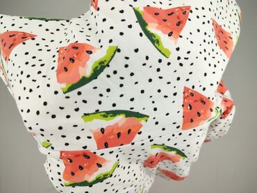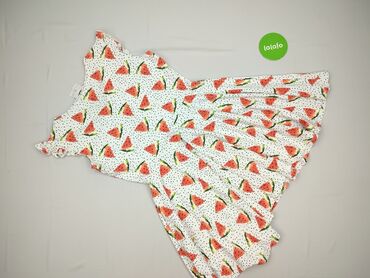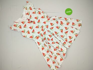 Na co dzieńSukienka damska we wzór plasterków arbuza. Sukienka ma krótkie rękawy z falbankami, dekolt w kształcie litery V z ozdobną czerwoną kokardką oraz rozkloszowany dół, który nadaje jej lekkości. Dominujący biały kolor z czarnymi groszkami stanowi tło dla wyrazistych czerwono-zielonych wzorów arbuza, tworząc wakacyjny i świeży wygląd. Idealna na ciepłe dni.