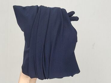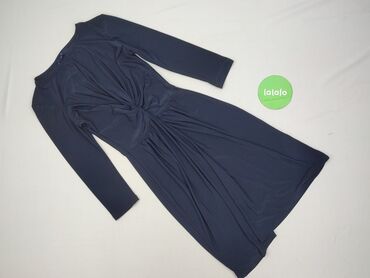 Klasyczna granatowa sukienka idealna do biura, na spotkania czy wieczorne wyjścia; materiał ładnie się układa i podkreśla talię dzięki marszczeniom. Marka: Next. Rozmiar i metki widoczne na zdjęciach.