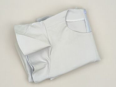 Bluzka damska z lekko połyskującej tkaniny w kolorze szampańskiej perły. - Krój: prosty, swobodny - Dekolt: okrągły - Rękaw: krótki - Tył: małe rozcięcie z zapięciem na guzik - Materiał: gładki, d...