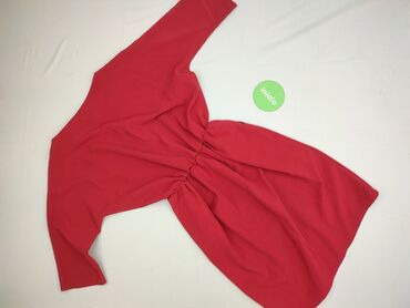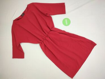 Sukienka damska w kolorze intensywnej czerwieni. - Krój: prosty, z delikatnym odcięciem i marszczeniem w talii, długość midi. - Rękawy: 3/4. - Dekolt: okrągły. - Materiał: gładka, miękka dzianina ...