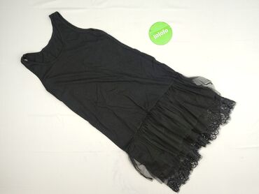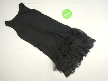 Czarna sukienka mini na ramiączkach z koronką - Fason: dopasowana, krótka (mini), bez rękawów - Materiał: elastyczna tkanina z transparentnymi wstawkami z plisowanego tiulu; front i boki zdobione ...Stan: