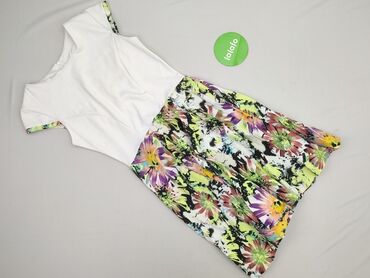 Sukienka damska, rozmiar M. Góra w kolorze czarnym, z dekoltem kwadratowym i krótkim rękawem; dół w drobny, kwiatowy wzór na czarnym tle. Fason odcinany w talii, rozkloszowany dół zapewnia swobodę ...