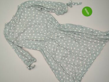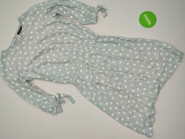 Sukienka damska w grochy, rozmiar L. - Kolor: granatowy z białymi, nieregularnymi kropkami - Krój: kopertowy look z dekoltem V, taliowana, dół z zakładką (efekt wrap) - Rękaw: do łokcia - Długość:...