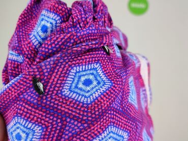- Wzór: geometryczne sześciokąty/pentagony w kolorach fuksja, fiolet, niebieski i biały; drobne kropki tworzą efekt 3D.