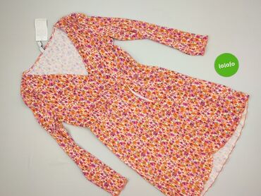 Sukienka damska w kwiaty, rozmiar XL - Fason: rozkloszowana, długość przed kolano - Dekolt: kopertowy w kształcie V - Rękawy: długie, bufiaste z gumką przy mankiecie - Talia: podkreślona, z elasty...