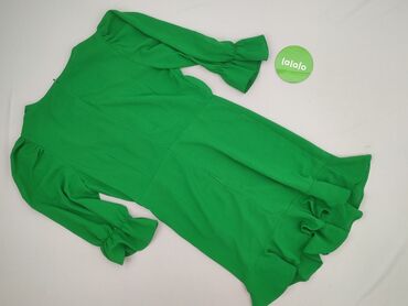 Zielona sukienka z długim rękawem - Fason: rozkloszowany dół, marszczenie i drapowanie w talii podkreślające sylwetkę - Dekolt: kopertowy/V - Długość: do kolan (na podstawie proporcji ze zdjęć) - ...