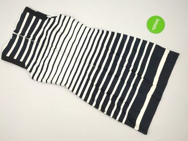 Sukienka ORSAY, dwukolorowa - Krój: dopasowany, ołówkowy, bez rękawów - Długość: do kolan - Góra: granatowa w geometryczny wzór (niebieskie i białe akcenty), delikatne zakładki przy dekolcie - Dół...Stan: