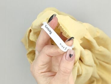 Sukienka Sinsay, rozmiar S - Kolor: intensywny musztardowy/żółty - Fason: mini, rozkloszowana od talii - Dekolt: prostokątny - Rękawy: krótkie bufiaste z gumką - Materiał: lekko marszczony/krepono...