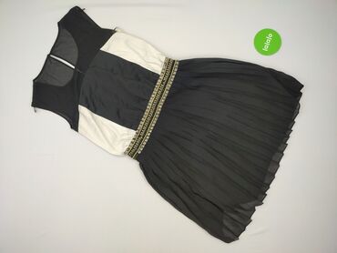 Sukienka damska Next, rozmiar 8. - Krój: bez rękawów, góra lekko marszczona, talia podkreślona kontrastową listwą. - Kolorystyka: góra czarna, dół jasnoszary; pas w kolorze ecru. - Zapięcie: zamek...