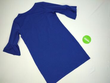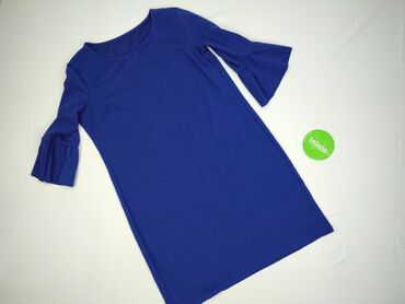 Sukienka damska, kobaltowa - Fason: prosta, lekko dopasowana, długość do kolan - Dekolt: okrągły - Rękawy: do łokcia z subtelną falbanką/przeszyciem przy mankiecie - Rozmiar z metki: 40 - Materiał...