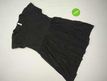 Sukienka damska, czarna, z dzianiny o gładkiej strukturze. - Krój: prosta, lekko oversize w górnej części, z charakterystycznym marszczeniem/zwinięciem materiału przy dole. - Długość: midi do łydki...