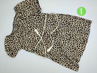 Bluzka damska z motywem panterki - Krój: luźny, lekko rozkloszowany, długość do bioder - Dekolt: elastyczny z marszczeniem i wiązaniem na sznureczek z przodu - Rękawy: krótkie, luźne, z gumką w gó...