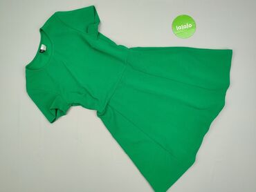 Sukienka damska H&M, rozmiar S - Krój: prosta, T‑shirtowa, długość za kolano - Rękawy: krótkie - Dekolt: okrągły - Kolor: oliwkowa z delikatnym, prążkowanym splotem dzianiny - Materiał: 56% bawełn...