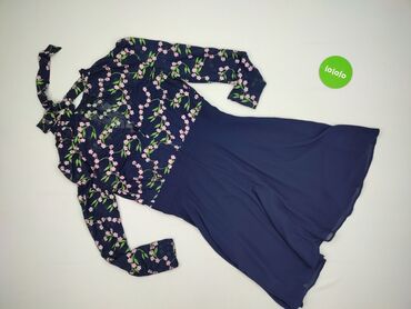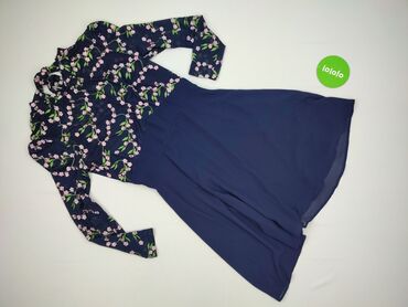 Sukienka ORSAY - Model: mini, z długim rękawem - Fason: lekko taliowana, z delikatnymi marszczeniami przy dekolcie i rękawach - Wzór: gęsty, kwiatowo-roślinny na granatowym tle - Dekolt: w kształc...