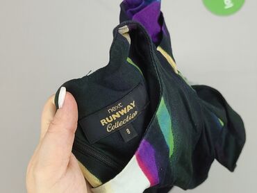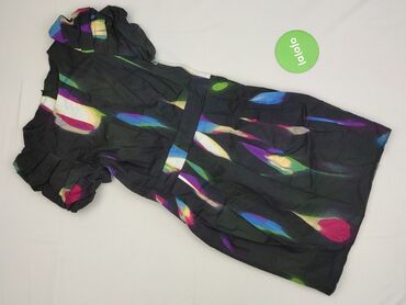 Sukienka damska Medicine, rozmiar S - Fason: mini, dopasowana w talii z marszczeniami, długi rękaw - Wzór: czarne tło z kolorowymi, malarskimi plamkami (róż, fiolet, niebieski, pomarańcz) - Dekolt...