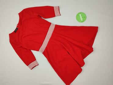 Czerwona sukienka z koronką, rozmiar S - Krój: ołówkowy, długość za kolano - Rękawy: długie - Dekolt: półokrągły z efektowną czarną koronką na ramionach i górnej części przodu/tyłu - Zapięcie: dłu...
