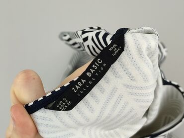 Sukienka ZARA BASIC - Rozmiar z metki: S (EUR S / USA S / MEX 26) - Fason: dopasowana góra, rozkloszowany dół; bez rękawów; okrągły dekolt - Zapięcie: długi suwak z tyłu - Wzór: biało‑granatowy, g...