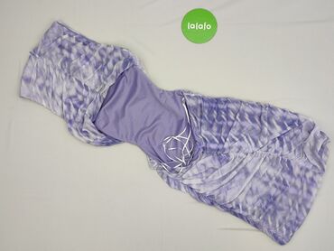 - Tkanina: elastyczna, lekko połyskująca siateczka z marszczeniami i drapowaniem na całej długości; wewnątrz wszyta gładka podszewka w kolorze lawendowym.