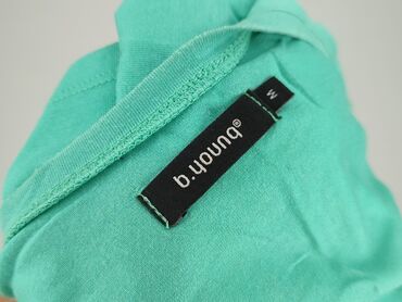 Sukienka/tunika w paski - Kolor: turkusowy w poziome, jaśniejsze i ciemniejsze paski - Fason: lekko odcinana pod biustem, rozszerzana ku dołowi; dekolt w kształcie litery V z zakładkami; krótkie, ...