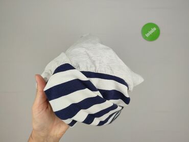 - Wzór/kolor: góra gładka, jasnoszara melanż; dół w poziome granatowo-białe pasy w stylu marynistycznym.
