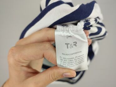 Sukienka damska TOM&ROSE, rozmiar L - Fason: prosta, z wiązaniem w pasie (sznurek z tego samego materiału), krótkie rękawki typu cap. - Wzór: poziome paski w odcieniach granatu i bieli (różnej sze...