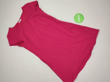 Sukienka damska, różowa (fuksja) z krótkim rękawem - Fason: prosta, T‑shirtowa, długość do kolan - Dekolt: okrągły - Rękawy: krótkie, raglanowe - Detale: mała kieszonka na piersi z ozdobną wszywką...