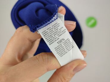 Sukienka damska Sinsay, rozmiar M. - Kolor: intensywny kobaltowy/niebieski - Wzór: białe grochy (polka dots) - Krój: kopertowy dekolt w serek, krótkie rękawy - Talia: elastyczna gumka podkreślając...