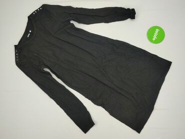 Czarna sukienka Sinsay, rozmiar S - Fason: dopasowany, długość przed kolano - Rękaw: długi - Dekolt: okrągły - Detal: marszczenie na przodzie na wysokości biustu - Materiał: miękka dzianina bawełn...