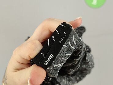 Sukienka Sinsay, rozmiar S. - Kolor: czarny z drobnym, jasnym, nieregularnym printem (efekt drobnych plamek). - Fason: mini, lekko rozkloszowany dół z delikatnymi falbanami; odcięcie i marszczenia...
