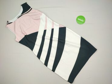 Sukienka damska w paski, rozmiar L - Fason: dopasowany, ołówkowy, długość do kolan - Wzór: kontrastowe czarno‑białe pasy ułożone pod różnymi kątami, optycznie wysmuklające sylwetkę - Rękaw: krótki...