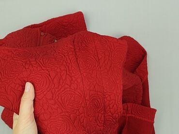 Czerwona sukienka ORSAY, rozmiar EU 36 - Fason: mini z długim rękawem, podwyższona stójka - Krój: dopasowana góra, od linii bioder fantazyjnie modelowany dół z naszytymi patkami i dekoracyjnymi gu...