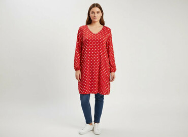 Idealna na wiosnę i lato, do stylizacji retro i smart casual. Klasyczny print w grochy dodaje charakteru, a zwiewna tkanina zapewnia wygodę.