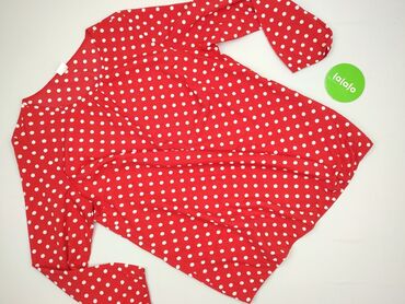 Czerwona sukienka w białe grochy - Krój: lekko rozszerzana, długość mini do kolan (w zależności od wzrostu), dekolt w kształcie litery V - Rękawy: krótkie z falbanką - Wzór: klasyczne białe kropki...Stan: