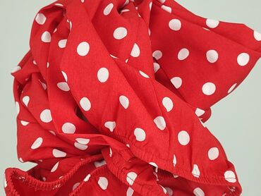 Czerwona sukienka w czarne groszki - Krój: midi, rozkloszowana spódnica, odcięcie gumką w pasie. - Dekolt/wykończenie: elastyczna, marszczona gumka wokół dekoltu – można nosić klasycznie lub opusz...