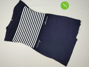 Sukienka damska w paski, rozmiar 48. - Fason: prosta, do kolan, krótki rękaw - Wzór: poziome biało‑granatowe paski w stylu marynistycznym - Dekolt: w serek z czerwonym lamowaniem i ozdobną listwą ...