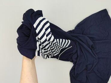 Sukienka dzianinowa w paski – granat/biel - Krój: prosty, luźny T‑shirt dress z krótkim rękawem typu kimono - Długość: do kolan lub za kolano (w zależności od wzrostu) - Dekolt: okrągły, obszyty g...Stan: