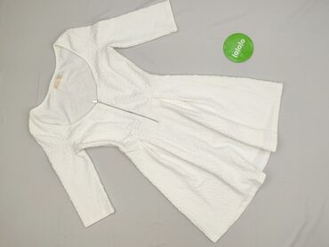 Sukienka damska Bershka - Model: dopasowana, na ramiączkach (szerokie ramiączka), długość mini/przed kolano - Kolor: biały - Materiał: elastyczna dzianina z koronkowym/ażurowym, geometrycznym wzor...