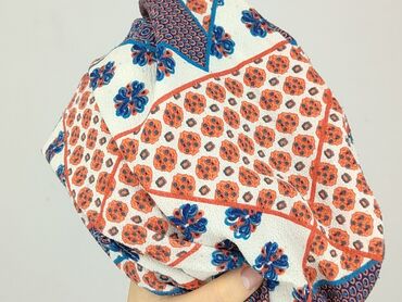 - Print: patchwork/geometryczny z motywami kwiatowymi; kolory: biel, pomarańcz, granat, niebieski
