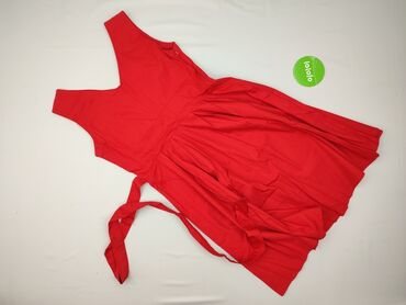 Czerwona sukienka midi bez rękawów - Marka: Camileu (metka widoczna na zdjęciu) - Fason: dopasowana góra z cięciami modelującymi, pas z poziomymi zakładkami/lamówkami, dół lekko rozszerzany do ko...