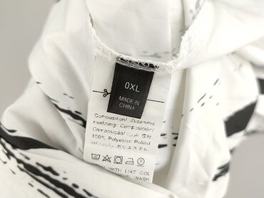 Sukienka damska bez rękawów, biała w czarny roślinny wzór (liście/pióra). - Krój: luźny, swobodnie opływający sylwetkę, lekko rozszerzany ku dołowi (oversize/relaxed fit). - Dekolt: okrągły. Z ty...
