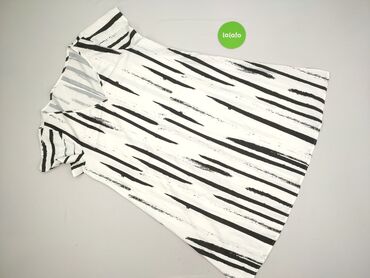 Sukienka damska z krótkim rękawem, rozmiar M. - Kolor dominujący: biały, z czarnymi wykończeniami przy dekolcie i mankietach. - Dekolt w kształcie litery V z kontrastową lamówką. - Fason: lekko ...