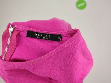 Sukienka MOHITO, rozmiar 38 - Kolor: fuksjowo‑różowy - Materiał: 100% poliester (zgodnie z metką) - Tkanina półtransparentna z tłoczonym, roślinnym wzorem - Fason: taliowana gumką w pasie, dół z f...