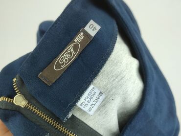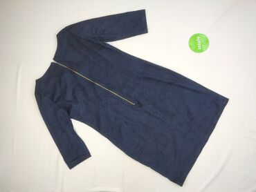 Granatowa sukienka Fasone, rozmiar L - Krój ołówkowy, długość przed kolano - Dekolt okrągły - Góra i krótkie rękawki z półtransparentnej siateczki - Materiał elastyczny, gładki, bez wzorów - Z tył...