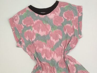 Sukienka damska w drobny kwiatowy wzór - Krój: luźny, lekko rozszerzany ku dołowi - Długość: przed kolano (mini/krótka) - Rękawy: krótkie z delikatnym marszczeniem - Dekolt: okrągły - Detale: pion...Stan: