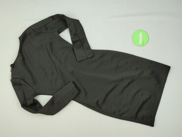 Sukienka damska z długim rękawem, ołówkowa, długość za kolano. - Kolor: czarny z dekoracyjnym, roślinnym motywem piór (biel/oliwka/złoto). - Dół sukienki z bogatym, ornamentalnym wzorem w odcie...Stan:
