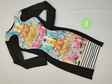 Sukienka AX Paris, rozmiar 14 - Fason: ołówkowa/tuba, bez ramiączek (strapless), długość midi - Wzór: intensywny, wielobarwny print w kwiaty na ciemnogranatowym tle - Materiał: 95% bawełna, 5% elas...