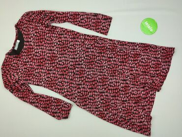 Sukienka GREY WOLF, rozmiar XL - Fason: lekko rozkloszowana, długość przed kolano - Rękaw: długi - Dekolt: okrągły - Wzór: bogaty, kwiatowo‑ornamentowy na granatowym tle (odcienie różu, żółci, zie...