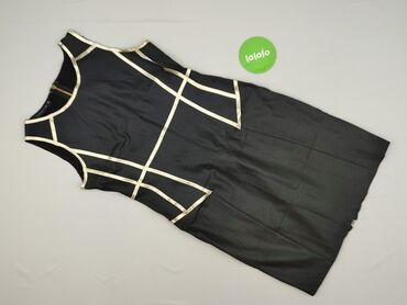 Czarna sukienka ołówkowa bez rękawów z kontrastowymi, białymi lamówkami i ozdobnymi patkami na guzik z przodu oraz na ramionach. - Fason: dopasowany, długość za kolano - Dekolt: okrągły - Zap...