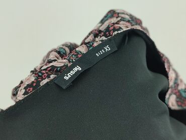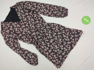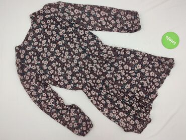 Sukienka Sinsay - Rozmiar: XXS (z metki) - Kolor: czarny w drobny, niebieski kwiatowy wzór - Krój: kopertowy dekolt w serek, odcięcie w talii, dołem falbany - Rękawy: długie, lekko bufiaste, zakoń...