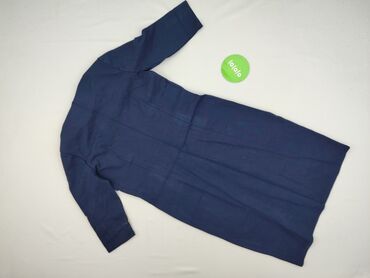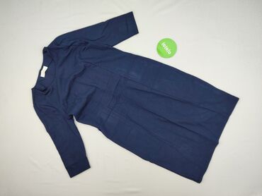 Sukienka damska, ołówkowa, granatowa/czarna (odcień ciemny). - Krój dopasowany z modelującymi cięciami, długość za kolano (midi). - Dekolt w kształcie łódki z subtelnym wycięciem, krótkie rękawy....